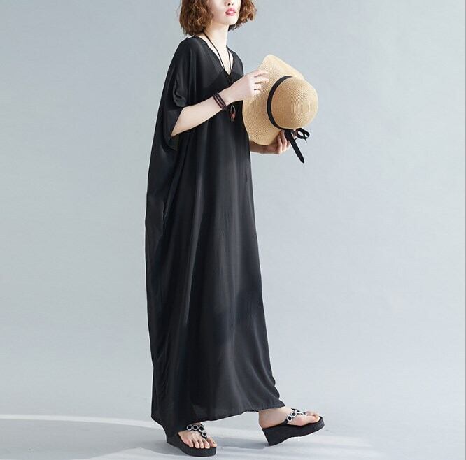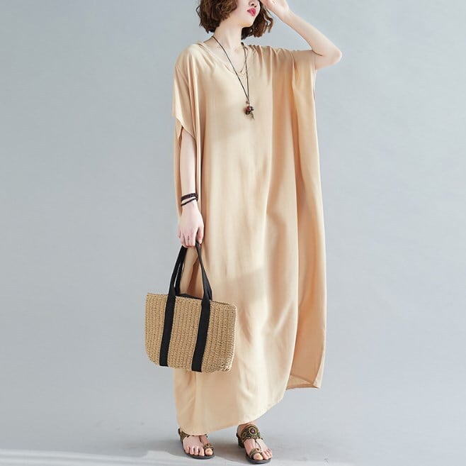 ワンピース 無地 ビッグシルエット オーバーサイズ Vネック マキシ丈 カジュアル 大人可愛い 韓国 オルチャン SS03-017 | happiness-RK ~おしゃれ&可愛い♪レディースファッション通販
